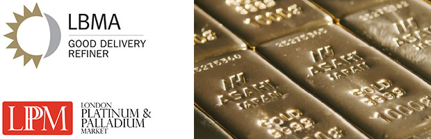 アサヒメタルファインは一般社団法人日本金地金流通協会の正会員で、金・銀・プラチナ・パラジウムの地金は、大阪取引所(OSE)の受渡供用品としてブランド認証を受けています。さらに、金・銀はLBMA(The London Bullion Market Association)、プラチナ・パラジウムはLPPM(The London Platinum and Palladium Market)のグッド・デリバリー・バーとして認定を受けており、確かな品質が世界のマーケットで高く評価されています。