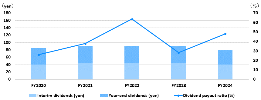 Our policy is to maintain a dividend payout ratio of approximately 40%, while securing sufficient internal reserves for capital investment and M&A to support future growth.