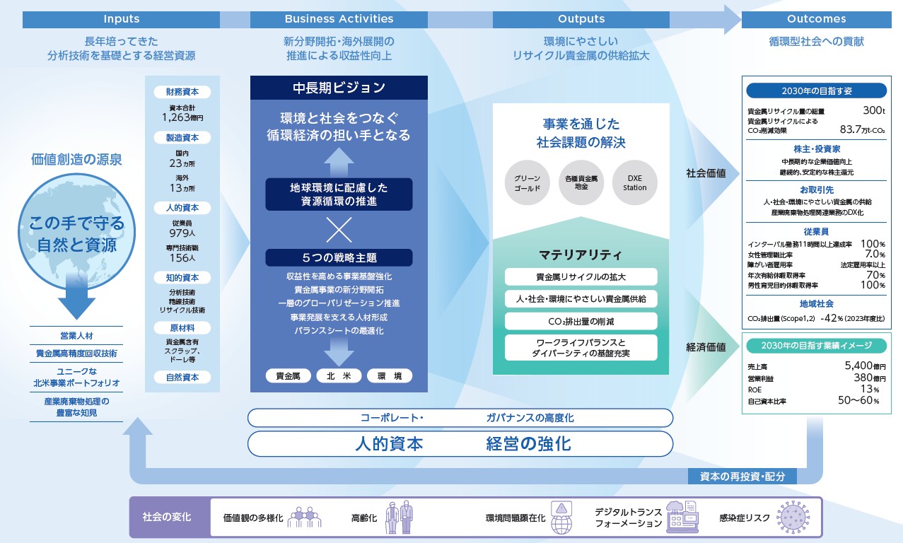 わたしたちは「環境と社会をつなぐ循環経済の担い手となる」ことを目指して、長年にわたり事業の成長と社会的課題の解決を両立させてきました。 今後も事業活動から生み出された価値を最大化させるように努めていきます。